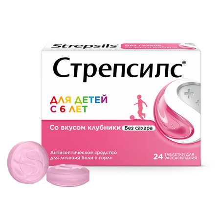 Не содержит сахар.* Обладает приятным клубничным вкусом. Оказывает антисептическое действие, помогает облегчать боль.* Благодаря формату таблетки для рассасывания действующее вещество распределяется в тканях глотки более равномерно и сохраняется дольше, что дает больше возможностей для лечебного воздействия. Препарат борется с бактериями и грибами**, оказывает антимикотическое действие. Внимательно прочтите инструкцию по медицинскому применению перед приемом препарата. *Инструкция по медицинскому применению лекарственного препарата Стрепсилс®, таблетки для рассасывания [клубничные]. Фарм. группа: антисептическое средство. РУ: П N015151/01. **Препарат активен в отношении широкого спектра грамположительных и грамотрицательных бактерий и грибков в лабораторных тестах. Инструкция по медицинскому применению лекарственного препарата Стрепсилс®, таблетки для рассасывания [клубничные]. Фарм. группа: антисептическое средство. РУ: П N015151/01.