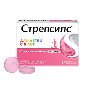 Показания к применению— лечение инфекционно-воспалительных заболеваний полости рта и глотки (облегчает боль и смягчает раздражение в горле).Применение при беременности и кормлении грудьюПрименение препарата во время беременности и в период грудного вскармливания возможно только по рекомендации врача в случае, если предполагаемая польза для матери превышает потенциальный риск для плода и ребенка.Противопоказания— дефицит сахаразы/изомальтазы, непереносимость фруктозы, глюкозо-галактозная мальабсорбция — детский возраст до 6 лет — повышенная чувствительность к компонентам препарата. С осторожностью следует применять препарат при беременности, в период грудного вскармливания.Побочное действиеНижеперечисленные побочные реакции отмечались при кратковременном приеме препарата в рекомендованных дозах. При лечении хронических состояний и при длительном применении возможно появление других побочных реакций. Оценка частоты возникновения побочных реакций произведена на основании следующих критериев: очень часто (1/10), часто (от 1/100 до меньше1/10), нечасто (от 1/1000 до меньше1/100), редко (от 1/10 000 до меньше1/1000), очень редко (меньше1/10 000), частота неизвестна (данных для оценки частоты недостаточно). Со стороны иммунной системы: частота неизвестна — реакции гиперчувствительности. Со стороны пищеварительной системы: частота неизвестна — тошнота, боль в животе, ощущение дискомфорта в полости рта (чувство жжения или покалывания, отек). Со стороны кожи и подкожных тканей: частота неизвестна — сыпь. При появлении вышеуказанных или иных побочных реакций, не указанных в инструкции, пациенту следует прекратить применение препарата и обратиться к врачу.Состав1 таб. 2,4-дихлорбензиловый спирт 1.2 мг амилметакрезол 0.6 мг 1 таб. 2,4-дихлорбензиловый спирт 1.2 мг амилметакрезол 0.6 мг. Вспомогательные вещества: винная кислота — 26 мг, ароматизатор клубничный (Flav P 052312B) — 9.Взаимодействие с другими препаратамиКлинически значимого взаимодействия с другими препаратами не выявлено. Возможно одновременное применение препарата с другими местными противомикробными средствами.
