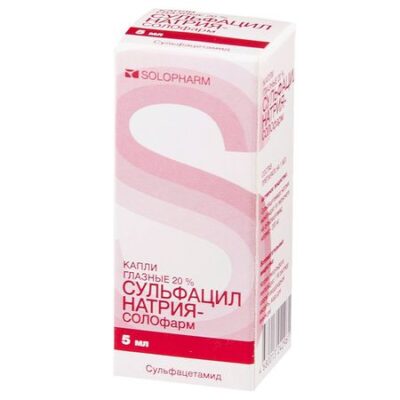 Показания в комплексной терапии заболеваний век, конъюнктивы, роговицы, переднего отрезка сосудистой оболочки и слезных протоков, вызванных чувствительными к сульфацетамиду микроорганизмами; для профилактики инфекционных осложнений в комплексной терапии ожогов и травм органа зрения. Фармакологическое действие Противомикробный бактериостатический препарат, сульфаниламид. Механизм действия обусловлен конкурентным антагонизмом с пара-аминобензойной кислотой, угнетением дигидроптероатсинтетазы, нарушением синтеза тетрагидрофолиевой кислоты, необходимой для синтеза пуринов и пиримидинов. Активен в отношении грамположительных и грамотрицательных кокков, Escherichia coli, Shigella spp., Vibrio cholerae, Clostridium perfringers, Bacillus anthracis, Corynebacterium diphtheriae, Yersinia pestis, Chlamydia spp., Actinomyces israelii, Toxoplasma gondii. Возможно развитие резистентности к сульфацетамиду. Лекарственное взаимодействие Сульфацетамид усиливает эффект антикоагулянтов непрямого действия. Совместное применение с прокаином, тетракаином, бензокаином снижает бактериостатический эффект сульфацетамида. Дифенин, пара-аминосалициловая кислота (ПАСК), салицилаты усиливают токсичность сульфацетамида. Сульфацетамид несовместим с солями серебра.