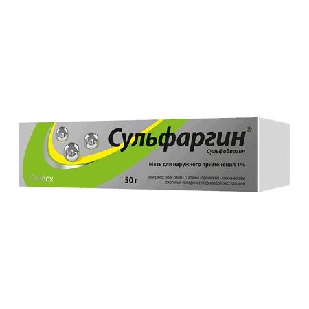 Показания При нанесении на раневую поверхность в периферический и системный кровоток абсорбируется около 10% сульфадиазина и 1% серебра. Нанесение на обширную раневую поверхность сопровождается повышением концентрации сульфадиазина в крови до 10-20 мкг/мл. Фармакологическое действие Противомикробное средство широкого спектра действия, сульфаниламид. Оказывает бактерицидное действие. Препарат активен в отношении грамположительных и грамотрицательных бактерий (Escherichia coli, Proteus spp., Staphylococcus spp., Klebsiella spp.). Бактерицидные свойства мази Сульфаргин® обусловлены активностью ионов серебра, которые высвобождаются в ране в результате диссоциации серебряной соли сульфадиазина; высвобождение ионов серебра происходит постепенно (умеренная диссоциация), обеспечивая постоянство противомикробного действия. Бактерицидная активность ионов серебра дополняется бактериостатическим эффектом сульфадиазина (также высвобождающегося в процессе диссоциации серебряной соли сульфадиазина). Сульфаргин® характеризуется умеренной осмотической активностью и не обладает некролитическими свойствами. Лекарственное взаимодействие Сульфадиазин серебра может инактивировать ферментные препараты, применяемые для очищения раны, поэтому одновременное применение этих препаратов нежелательно.