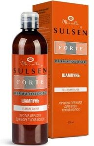 Шампунь Sulsen Forte — эффективное средство в решении проблем с перхотью всех типов и ее последствиями. Обеспечивает бережное очищение волос, помогает минимизировать неприятные шелушения и зуд на коже головы. Главный действующий компонент в составе формулы — дисульфид селена (сульсен).Вещество, которое нормализует работу сальных желез, борясь тем самым с основными причинами появления перхоти, — чрезмерной сухостью или жирностью волос. Сульсен также стабилизирует процесс отшелушивания ороговевших клеток эпидермиса, тем самым минимизируя появления белых хлопьев, так портящих внешний вид волос. Активная формула шампуня, дополненная экстрактами лопуха, солодки и чистотела, предотвращает деструктивные процессы в волосяных луковицах, что положительно сказывается на состоянии локонов. Они становятся более крепкими и эластичными.