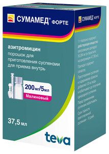 Показания к применениюИнфекционновоспалительные заболевания вызванные чувствительными к препарату микроорганизмами: инфекции верхних дыхательных путей и ЛОРорганов (фарингит/тонзиллит синусит средний отит) инфекции нижних дыхательных путей: острый бронхит обострение хронического бронхита пневмония в т.ч. вызванные атипичными возбудителями инфекции кожи и мягких тканей (рожа импетиго вторичные инфицированные дерматозы) начальная стадия болезни Лайма (боррелиоз) – мигрирующая эритема (erythema migrans).Применение при беременности и кормлении грудьюПри беременности и в период грудного вскармливания применяют только в случае если предполагаемая польза для матери превышает потенциальный риск для плода и ребенка. При необходимости применения препарата в период грудного вскармливания рекомендуется приостановить грудное вскармливание.ПротивопоказанияПовышенная чувствительность к азитромицину эритромицину другим макролидам или кетолидам или другим компонентам препарата нарушение функции печени тяжелой степени (класс С по классификации ЧайлдПью) дефицит сахаразы/изомальтазы непереносимость фруктозы глюкозогалактозная мальабсорбция детский возраст до 6 мес. одновременный прием с эрготамином и дигидроэрготамином.Состав1 г порошка для приготовления суспензии для приема внутрь содержит: действующее вещество азитромицина дигидрат — 50 094 мг1) в пересчете на азитромицин 47 790 мг вспомогательные вещества: сахароза 898 206 мг/ 902 706 мг/ 904 206 мг2) натрия фосфат (натрия фосфат трехосновный безводный) 20 000 мг/20 000 мг/20 000 мг гипролоза (гидроксипропилцеллюлоза) 1 600 мг/1 600 мг/1 600 мг камедь ксантановая 1 600 мг/1 600 мг/1 600 мг ароматизатор банановый 12 000 мг/0/0 ароматизатор ванильный 4 500 мг/0/0 ароматизатор клубничный 0/12 000 мг/0 ароматизатор малиновый 0/0/10 500 мг титана диоксид 5 000 мг/5 000 мг/5 000 мг кремния диоксид коллоидный безводный 7 000 мг/ 7 000 мг/7 000 мг.1) указаны значения из расчета теоретической активности азитромицина 95 4 %.2) количество сахарозы может варьироваться в зависимости от фактической активности азитромицина.