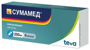 Показания к применениюИнфекционновоспалительные заболевания вызванные чувствительными к препарату микроорганизмами: Инфекции верхних дыхательных путей и ЛОРорганов (фарингит/тонзиллит синусит средний отит) Инфекции нижних дыхательных путей: острый бронхит обострение хронического бронхита пневмония в т.ч. вызванные атипичными возбудителями Инфекции кожи и мягких тканей (рожа импетиго вторично инфицированные дерматозы) Начальная стадия болезни Лайма (боррелиоз) мигрирующая эритема (erythema migrans) Инфекции мочеполовых путей вызванные Chlamydia trachomatis (уретрит цервицит).Применение при беременности и кормлении грудьюПри беременности и в период грудного вскармливания применяют только в случае если предполагаемая польза для матери превышает потенциальный риск для плода и ребенка. При необходимости применения препарата в период грудного вскармливания рекомендуется приостановить грудное вскармливание.ПротивопоказанияПовышенная чувствительность к азитромицину эритромицину другим макролидам или кетолидам или другим компонентам препарата тяжелая печеночная недостаточность (класс С по ЧайлдПью) детский возраст до 12 лет с массой тела менее 45 кг одновременный прием с эрготамином и дигидроэрготамином.Состав1 капсула содержит: действующее вещество азитромицина дигидрат 262 05 мг1) в пересчете на азитромицин — 250 мг вспомогательные вещества: целлюлоза микрокристаллическая 43 95 мг2) натрия лаурилсульфат 1 40 мг магния стеарат 12 60 мг.Твердая желатиновая капсула №13) [крышечка: индигокармин (Е-132) 0 1100% титана диоксид (Е-171) 0 9000% желатин до 100% корпус: индигокармин (Е-132) 0 0424% титана диоксид (Е-171) 3 1237% желатин до 100%] 76 00 мг4).1) — количество указано из расчета теоретической активности азитромицина 95 4%2) — количество целлюлозы микрокристаллической может варьироваться в зависимости от фактической активности азитромицина3) — капсулы содержат серы диоксид 50 ppm в качестве консерванта4) — средняя масса пустой твердой желатиновой капсулы № 1