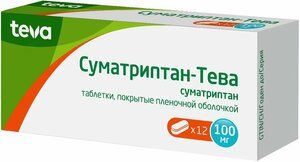 Суматриптан-Тева Таблетки покрытые пленочной оболочкой 100 мг 12 шт