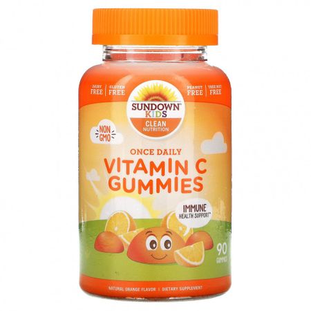 Sundown Naturals Kids, Один раз в день жевательные мармеладки с витамином С, натуральный апельсин, 90 жевательных таблеток