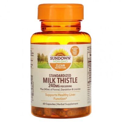 Описание Бех глютенаБез молочных продуктовБЕЗ ГМОЧистое питаниеПлюс 240 мг фенхеля, одуванчика и солодкиПоддерживает нормальную работу печениРастительная добавкаЧистое питаниеКомпания Sundown® Kids руководствуется принципами чистого питания и прозрачности. Вот почему вы не найдете генетически модифицированных ингредиентов, глютена, пшеницы, молочных продуктов, лактозы или искусственных ароматизаторов в ЛЮБОМ из наших продуктов. Рекомендации по применению Взрослым принимать по две (2) капсулы три раза в день, желательно во время еды. Напоминаем о необходимости проконсультироваться с врачом по вопросу приема добавок и лекарственных препаратов. Ингредиенты Желатин, диоксид кремния.Без ГМО, глютена, пшеницы, молока, лактозы, искусственных красителей, искусственных ароматизаторов, искусственных подсластителей, сахара, сои, арахиса, древесных орехов, рыбы, без кунжута, натрия. Предупреждения Продукт не предназначен для применения во время беременности и кормления грудью. Перед началом применения во время приема препаратов или при наличии каких-либо заболеваний следует проконсультироваться с врачом. Не следует принимать этот продукт, если у вас аллергия на амброзию или цветы, подобные маргариткам. При возникновении любых побочных реакций следует прекратить прием и обратиться к врачу. Не предназначено для лиц младше 18 лет.Хранить в недоступном для детей месте. Хранить при комнатной температуре и избегать воздействия высоких температур. Упаковка имеет защиту от вскрытия. Не следует использовать данный продукт, если пленка под крышкой повреждена или отсутствует. Пищевая ценностьРазмер порции: 2 капсулыПорций в упаковке: 30 Количество в 1 порции:% от суточной нормыЭкстракт расторопши пятнистой (Silybum marianum) (семена)