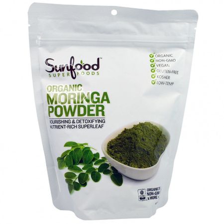 Сведения о добавке Размер порции: 2 ч. л. (4 г) Количество порций в упаковке: 56 Состав порции % от суточной нормы* Калорий 15 Калорий из жиров 3 Всего жиров 1 г 1 % Насыщенные жиры 0 г 0 % Трансжиры 0 г Холестерин 0 мг 0 % Натрий 7 мг 1 % Всего углеводов 2 г 1 % Клетчатка 1 г 3 % Сахара 0 г Белки 1 г Витамин A 4 % Витамин С 0 % Кальций 8 % Железо 1 % *Проценты от суточной нормы основаны на рационе в 2000 калорий. Органический продукт Не содержит ГМО Веганский продукт Не содержит глютена Кошерный продукт Получен путем низкотемпературной обработки Питательный продукт, помогающий выводить токсины Сертифицированный CCOF продукт Органический продукт, не содержит ГМО и многие другие полезные свойства Органический продукт согласно нормам Министерства сельского хозяйства СШАПорошок моринги — это комплексный растительный суперпродукт, который питает организм и выводит токсины. В отличие от многих обычных добавок и мультивитаминов, порошок листьев моринги представляет собой цельную пищу. Это означает, что его питательные вещества легко усваиваются и используются организмом. Добавьте его в свой утренний смузи и почувствуйте энергетический, иммунный, антистрессовый и детоксицирующий эффект этого концентрированного суперпродукта на себе!Продукты Sunfood не похожи на другиеНаш сертифицированный порошок органической моринги не содержит ГМО и получен с помощью низкотемпературной обработки. Такой метод сохраняет все хрупкие питательные вещества, поскольку листья мягко измельчаются в мелкий порошок, что обеспечивает высокую эффективность и непревзойденное качество. Наш порошок моринги настолько чист, насколько это возможно. Он не содержит добавок, консервантов и наполнителей.