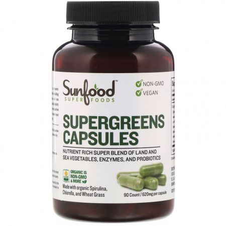 Sunfood, Supergreens Capsules, 155 mg, 90 Count