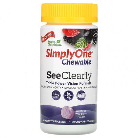 Super Nutrition, SimplyOne, добавка тройного действия для улучшения зрения, вкус лесных ягод, 30 жевательных таблеток