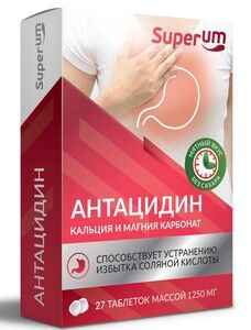 Продукт, способствующий облегчению чувства дискомфорта в желудке.Плотная трапеза, курение, употребление определенных продуктов (сладости, кофе, томаты, цитрусовые, пряная или острая пища и др.), тяжелый физический труд, прием некоторых лекарственных препаратов — вот далеко не полный список ситуаций, в результате которых человек может ощущать дискомфорт, чувство жжения или тепла в пищеводе, горький или кислый привкус во рту. Скорее всего, нечто подобное хотя бы раз в жизни испытывал каждый.Кальция карбонат и магния карбонат при попадании в желудок вступают в реакцию с находящейся там соляной кислотой, при забросе которой в пищевод человек чувствует неприятные ощущения. В результате нейтрализации соляной кислоты образуется вода и растворимые минеральные соли, причем этот процесс происходит с достаточно высокой скоростью, что способствует быстрому избавлению от таких проявлений дискомфорта, как чувство переполнения в подложечной области, тошнота, отрыжка кислым. Ионы магния помогают усилить образование слизи в желудке, повышая тем самым устойчивость его слизистой оболочки к агрессивному воздействию соляной кислоты.Многие средства для устранения дискомфорта в желудке, в состав которых входят соли кальция, способны вызывать запоры. «Антацидин», кроме карбоната кальция, содержит карбонат магния, два компонента, которые подобраны таким образом, что при приеме в рекомендованных дозах они не вызывают ни усиления запоров, ни их возникновения.