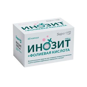 Биологически активная добавка к пище «Инозит + фолиевая кислота»Не является лекарственным средствомРекомендуется в качестве БАД к пище — дополнительного источника инозита (витамин В8) и фолиевой кислоты (витамин В9). Способствует коррекции метаболических нарушений, лежащих в основе дисфункции яичников у женщин. В качестве вспомогательного средства при синдроме поликистоза яичников. Оказывает положительное действие на репродуктивную функцию у женщин. В качестве вспомогательного средства для устранения андрогенных нарушений у женщин. Снижает риск развития инсулинорезистентности, диабета, избыточного веса и ожирения, опосредованно повышая чувствитель- ность рецепторов к инсулину и стимулируя переработку углеводов и жиров для поддержания энергетического метаболизма клетки.Инозит принимает участие в восстановлении регулярности менструального цикла и овуляции. Применение инозитола при поликистозе помогает стабилизировать метаболические процессы, нормализовать гормональный фон и даже улучшить функцию яичников. Повышается качество фолликулогенеза, увеличивается результативность ЭКО у женщин с синдромом поликистозных яичников.Повышает эффективность инозитола для зачатия дополнительный прием фолиевой кислоты. Такой тандем помогает стабилизировать давление, снизить процент «плохого» холестерина и уровень триглицеридов. Кроме того, существенно снижается риск развития гестационного диабета у женщин старше 30 лет.Фолиевая кислота играет важную роль в метаболизме аминокислот, синтезе белка и нуклеиновых кислот (прежде всего в продукции ДНК и РНК) и репарации хромосом. Поэтому она очень важна для нормального деления клеток и роста тканей.Преимущества препарата: удобство приема (2 капсулы) усиленная дозировка фолиевой кислоты — 400 мкг