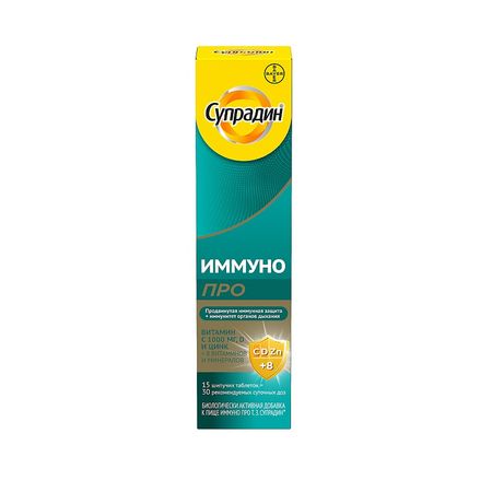 Главная » Аптека Супрадин Иммуно Про Таб.шип.№15 Просмотров 5 в качестве биологически активной добавки к пище – дополнительного источника витаминов С, D3 (200 ME в 1/2 таблетки) и цинка. Байер С.А.