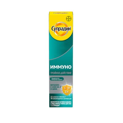 Усиленная комбинация важнейших витаминов для укрепления иммунитета. Свойства компонентов Витамин С защищает иммунные клетки, оказывая антиоксидантное действие. Способствует уменьшению восприимчивости организма к вирусам. Необходим для синтеза коллагена, который обеспечивает надежность защитных барьеров организма. Витамин D поддерживает врожденный иммунитет. Способствует выработке белков против бактерий, предупреждая их проникновение в организм; способствует развитию иммунных клеток. Цинк является естественным антиоксидантом, способствует развитию иммунных клеток и их защите. Цинк поддерживает работу иммунной системы и способствует сокращению продолжительности острых респираторных инфекций. Способствует усиленной выработке антител. Усиленная иммунная защита в период высокой активности вирусов благодаря высокой дозировке витамина C в комплексе с витамином D и Цинком. Способствует: – повышению сопротивляемости организма к инфекциям, – активации иммунных клеток организма и их защите от повреждения во время иммунного ответа, – выработке антител в ответ на инфекции. Не является лекарственным средством. Форма выпуска Шипучие таблетки c риской массой 4,5 г.