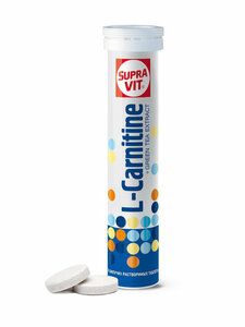 Биологически активная добавка Суправит Л-карнитин Плюс в форме шипучих таблеток содержит l-carnitine, коэнзим Q10. Одна из её важных функций — укрепление защитных сил организма Область применения: используется для коррекции метаболических процессов. Оказывает анаболическое, антигипоксическое и антитиреоидное действие, активирует жировой обмен, стимулирует регенерацию, повышает аппетит. Способствует снижению уровня холестерина в крови, способствует усиленному жировому обмену при аэробных нагрузках (бег, плавание и прочие дыхательные упражнения). Применять карнитин следует непосредственно перед тренировкой или во время неё. Применение не привязанное к аэробным тренировкам не несёт заметного эффекта жиросжигания. В одной упаковке содержится 20 шипучих растворимых таблеток. Способ применения: взрослым по 1 шипучей таблетке в день во время еды, растворив в стакане воды (200 мл). Продолжительность приема — 1 месяц.