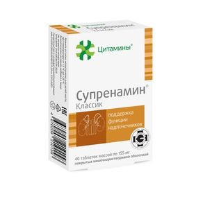 Супренамин Классик. Биорегулятор надпочечниковПри хронической усталости, длительном стрессе и проблемах в борьбе с жировыми отложениями по висцеральному типуНадпочечники — это небольшие железы полулунной формы, расположенные поверх каждой почки. Каждый надпочечник состоит из двух слоев — коркового и мозгового. Первый слой выделяет такие гормоны как кортизол, альдостерон и небольшое количество половых гормонов — эстрогена и тестостерона. В мозговом слое происходит выработка адреналина и норадреналина.Надпочечники и стрессПод воздействием стресса происходит стимуляция надпочечников и выброс в кровь адреналина и кортизола. Адреналин повышает частоту сердечных сокращений, артериальное давление и увеличивает расход энергии. Такая реакция считается немедленным ответом на стресс. Кортизол, как основной гормон стресса, увеличивает уровень сахара в крови, улучшает использование мозгом глюкозы и повышает доступность веществ, которые восстанавливают ткани. Как только действие стресса проходит, уровень гормонов возвращается к прежним значениям. Однако если стрессовый фактор присутствует постоянно, организм оказывается в условиях постоянного напряжения. В таких условиях надпочечники истощаются и происходит их дезадаптация на клеточном уровне. В медицине это состояние называется «синдром стресса надпочечников» или «синдром усталости надпочечников».Факторы, способствующие развитию усталости надпочечников: Напряженная жизненная ситуация, Хронические болезни, Хронический стресс (вредные условия труда, плохие семейные отношения, злоупотребление алкоголем), Нездоровая диета и отсутствие физических упражнений, Нарушения сна.Для восстановления поврежденной структуры клеток в первую очередь нужны протеины. Белки (протеины) контролируют процессы межклеточного взаимодействия и определяют способность к самовосстановлению клетки. Все виды тканей организма человека, содержат определенные типы протеинов. Это удалось установить, благодаря открытию Гюнтера Блобела, который получил за свою научную работу Нобелевскую премию. Ученый выяснил, что белковая молекула является саморегулирующейся. Недостаток пептидов (с возрастом или при патологии) ускоряет износ тканей, процессы старения и приводит к развитию заболеваний.Как действует?Супренамин Классик — это комплекс белков и нуклеопротеидов, получаемых из ферментно-эндокринного сырья, которое по белковому составу клеток идентично у всех млекопитающих. Как и все Цитамины, за счет механизма трансцитоза Супренамин Классик действует целенаправленно на клетки надпочечников и способствует нормализации их функции.Благодаря механизму транцитоза поступающий белок в неизмененном виде оказывается в клетке — цели, в данном случае целью являются клетки надпочечников. Попадая в надпочечники, Супренамин Классик насыщает их оптимальным белковым «рационом», позволяя клеткам быстрее восстанавливаться и нормализовать выполнение своих функций – выработку гормонов. По результатам клинических исследований можно сказать, что курсовое применение Супренамин Классик у лиц, продолжительное время подвергавшихся сильным стрессорным воздействиям, способствовало восстановлению нарушенного гормонального обмена, что подтверждалось данными лабораторных исследований. Установле