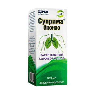 Показания Симптоматическая терапия при воспалительных заболеваниях дыхательных путей, сопровождающихся кашлем: ОРВИ, грипп; фарингит, ларингит, трахеит; бронхит, пневмония; начальные стадии коклюша. Хронические заболевания органов дыхания: бронхит курильщиков; лекторский ларингит. Фармакологическое действие Комплексный фитопрепарат, обладающий бронхолитическим, муколитическим, отхаркивающим и противовоспалительным действием. Адатода васика оказывает муколитическое, отхаркивающее и спазмолитическое действие. Солодка голая оказывает анальгезирующее, успокаивающее, противовоспалительное, отхаркивающее действие. Куркума длинная оказывает антисептическое, противовоспалительное, анальгезирующее действие. Базилик священный оказывает отхаркивающее, жаропонижающее и антисептическое действие. Имбирь настоящий оказывает противовоспалительное действие. Паслен желтоплодный оказывает противовоспалительное, отхаркивающее, жаропонижающее, противоаллергическое действие. Кардамон настоящий оказывает вирусостатическое и бронхолитическое действие. Перец длинный оказывает антибактериальное и противоаллергическое действие. Лекарственное взаимодействие Клинически значимого взаимодействия препарата Суприма-Бронхо с другими лекарственными средствами не описано.