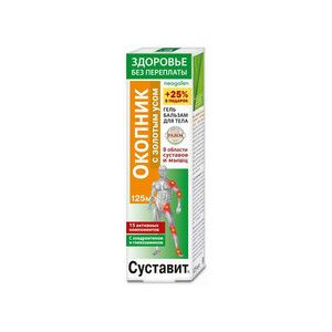Гель-бальзам Суставит «Окопник золотой ус» — натуральное средство для профилактики заболеваний суставов и позвоночника. Оказывает хондропротекгорное и регенерирующее действие, улучшает питание суставов. Обеспечивает суставы структурными элементами для активного обновления. Способствует сохранению упругости и гладкости хрящевых тканей, препятствует развитию деструктивных процессов и старению суставов. Поддерживает функциональное состояние опорно-двигательного аппарата, снижает риск развития остеоартрозов и остеохондроза, обладает противовоспалительными, обезболивающими, противоотечными, спазмолитическими свойствами.Окопник с золотым усом обеспечены высокой биологической активностью натуральных компонентов, обладающих выраженными разогревающими, хондропро-текторными, противовоспалительными, обезболивающими, противоотечными, спазмолитическими свойствами. Окопник (живокост, Symphytum) применяется в лечебной практике около 2 тысяч лет. О свойствах окопника говорит его родовое название: Symphytum — от греческого &ldquo:symphytos&rdquo: (сращивать, соединять), и Consolida -от латинского &ldquo:consolidare» (скреплять). Стимулирует регенерацию костной и хрящевой ткани, улучшает качество синовиальной жидкости, заживляет суставные микротравмы, ускоряет сращивание костей при переломах. Аллантоин, главное действующее вещество окопника, включён в список препаратов ВОЗ.В основе большинства заболеваний суставов и позвоночника лежит износ и разрушение суставного хряща. Поскольку в хряще отсутствуют нервные окончания, первые сигналы о заболевании мы получаем на достаточно поздних стадиях его развития — когда повреждение затрагивает костные и окружающие ткани или возникает воспаление. Поэтому при наличии факторов риска (в том числе возрастных) необходимо регулярное применение натуральных безопасных средств, содержащих специальные «строительные материалы» для суставов — хондроитин, глюкозамин и коллаген, а также питающие и противовоспалительные компоненты.Золотой ус (Callisia Fragronca) — одно из самых сильных лекарственных растений, мощный биогенный стимулятор с широким спектром лечебного действия. В листьях и усах обнаружены дубильные вещества, фпавоноиды, кислоты, большое содержание кальция и других микро- и макроэлементов. Используется при множестве заболеваний, особенно эффективен в качестве профилактического средства и в комплексном лечении болезней суставов и позвоночника. Обладает выраженным обезболивающим, противовоспалительным, противомикробным, антисептическим, иммунорегулирующим, восстанавливающим действием, благотворно влияет на систему кровообращения. Высокая эффективность растения принесла ему заслуженную любовь и доверие народа.Хондроитин (Chondroitin) — основной структурный компонент хряща и естественный защитник (хондропротектор) его клеток. Вырабатывается хрящевой тканью суставов. Повышает влаго-емкость хряща, предотвращает его высыхание. Обеспечивает механические и эластические свойства суставных поверхностей, улучшает качество суставной смазки (синовиальной жидкости).Глюкозамин (Glucosamin) — неотъемлемый элемент хрящевой ткани. Обеспечивает выработку хондроитина, улучшает обменные процессы в суставах. Стимулирует производство глюко-заминоглюканов, необходимых для восстановления хряща. Способствует регенер