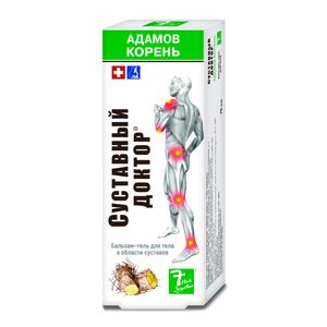 Бренд 7 НОТ ЗДОРОВЬЯСУСТАВНЫЙ ДОКТОР БАЛЬЗАМ-ГЕЛЬ АДАМОВ КОРЕНЬ — иновационный бальзам-гель с адамовым корнем и экстрактами сабельника, шалфея, шиповника, лопуха красного перца, обладает выраженным противовоспалительным и противоотечным действием.Активные ингредиенты:Адамов корень применяется при комплексной терапии проблем опорно -двигательного аппарата, заболеваниях костной ткани, суставных соединений и мышц. Заметно снижает болевой синдром и быстро улучшает самочувствие. Препараты адамова корня с успехом применяются при проблемах с позвоночником, в том числе остеохондрозах, при ревматических и радикулитных болях, артритах и полиартритах, подагрических симптомах, ишиасе. При этом адамов корень оказывает не только обезболивающее действие, но помогает остановить воспалительные процессы, способствует регенерации поврежденных тканей. Замечено, что после использования адамова корня уменьшаются боли в суставах, возвращается подвижность, исчезает неприятный суставной «хруст». С помощью адамова корня можно избавиться от последствий травм, ускорить исчезновение синяков и кровоподтеков, быстро справиться с последствиями растяжений, вывихов и других повреждений. Также из адамова корня готовят самые разнообразные мази, средства в виде бальзамов и прочие целебные препараты. Они широко применяются для борьбы с бородавками и повышенной пигментацией кожи, для лечения экземы, фурункулеза и других дерматологических заболеваний, для избавления от пяточных шпор, трофических язв, для лечения бурситов. Тонизирующее действие, которое адамов корень оказывает на сосуды, делает его эффективным средством при терапии варикозного расширения вен, тромбофлебитов. Воздействие адамового корня усилено экстрактами трав, которые традиционно применяют в России при устранении суставных недугов.Сабельник болотный — лекарственное растение с выраженным биостимулирующим, антибактериальным, обезболивающим, противовоспалительным, солевыводящим, противоревматическим, противоотечным и регенерирующим действием. Обладает многочисленными лечебными свойствами. Содержит микроэлементы (фосфор, калий, магний, медь) и эфирные масла. Признанное народное средство для борьбы с ревматизмом, радикулитом, артритами и артрозами, отложением солей в суставах рук и ног.Лопух обладает широким спектром лечебных действий: антисептическим, антимикробным, солевыводящим, противовоспалительным, противоотечным, ранозаживляющим. Традиционно применяется при подагре, ревматизме, обострении суставных заболеваний при переохлаждении. Стимулирует обмен веществ и регенерацию тканей.Шиповник — насыщает клетки витаминами С, В1, В2, PP. К, Е, органическими кислотами, микроэлементами (Мд, К, F, Fu, Си, Zn, Mb). По народным поверьям, шиповник вытягивает ломоту из тела.Сочетание адамова корня с красным перцем оказывает интенсивное глубокое воздействие, доставляя в мышечную и суставную ткани жизненно необходимые биоактивные вещества всего комплекса трав. Улучшает усвоение клетками питательных веществ.Результат восстанавливает подвижность суставов, усиливает регенерацию костно -суставных и мышечных тканей, укрепляет хрящевую ткань, снимает мышечный спазм и отечность, оказывает противовоспалитель¬ное, отвлекающее и разогревающее действие, активизирует микроциркуляц
