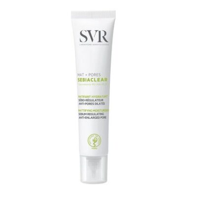 SVR Себиаклир Мат + Поры Гель-уход — ежедневный уход для комбинированной или жирной кожи с расширенными порами. Обеспечивает пролонгированный матирующий эффект в течение 8 часов. Сужает поры Устраняет жирный блеск Регулирует выработку кожного сала Средство имеет бархатистую текстуру oil-free и является прекрасной основой под макияж. Некомедогенно. Гипоаллергенная отдушка. Не содержит парабенов.Активные компоненты: Глюконолактон (4%) — инновационный компонент с двумя эффектами: кератолитическим (эффективность сопоставима с действием АНА, но при этом с лучшей переносимостью); и противовоспалительным (сравнимый с бензоил пероксидом); Ниацинамид (4%) — оказывает антибактериальное и себорегулирующее действие, борется с Propionibacterium acnes (эффект, сопоставимый с местными антибиотиками); Салициловая кислота (0,5%) — обеспечивает кератолитический эффект, выравнивает рельеф, уменьшает проявления постакне; Mat SR® (2%) — матирующий и себорегулирующий компонент для нивелирования жирного блеска и нормализации качества кожного сала; Гидрофильные сахара — обеспечивают полноценное увлажнение кожи.
