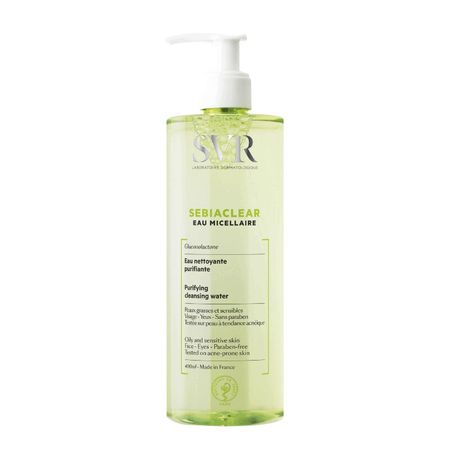 Для эффективного очищения проблемной кожи лаборатория SVR разработала Sebiaclear Eau Micellaire. Мицеллярная вода устраняет загрязнения, очищает поры, снимает макияж, в том числе водостойкий. Благодаря смягчающим компонентам средство прекрасно переносится чувствительной кожей, подходит для лица, контура губ и глаз. SVR Себиаклир Вода Мицеллярная проявляет матирующее и себорегулирующее действие, что помогает держать жирный блеск под контролем. При регулярном применении средство предотвращает появление акне и черных точек. Активные компоненты: мицеллы устраняют загрязнения и макияж; глюконолактон способствует удалению отмерших клеток, очищает и сужает поры, проявляет противовоспалительные свойства; экстракт тефрозии пурпурной предотвращает раздражение гиперчувствительной кожи, очищает, освежает и разглаживает. Без спирта. без красителей без минеральных масел без мыла без парабенов гипоаллергенно некомедогенно