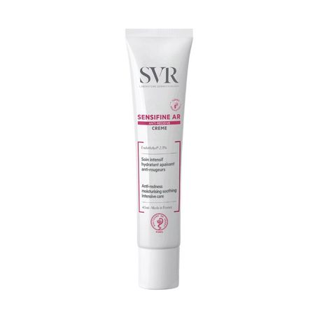 Крем с легкой гелевой текстурой SVR Sensifine AR Crème дарит моментальное чувство свежести и прохлады, надолго успокаивает кожу, устраняет красноту лица. Микропигменты зеленоватого цвета маскируют проявления купероза и розацеа. SVR Сенсифин AR Крем содержит запатентованный комплекс Endothélyol, который эффективно снимает воспаление и укрепляет капилляры. Разработанная для чувствительной кожи формула обладает высокой переносимостью, эффективность средства доказана под дерматологическим контролем. Данные клинического исследования с участием 23 добровольцев; увлажняющее, успокаивающее действие 24 часа; значительное снижение температуры кожи за 20 минут. По результатам клинического исследования и данных самооценки (20-22 участников, нанесение дважды в день, 28 дней), крем: уменьшает покраснение: 43%, мгновенный и длительный комфорт: 100%, длительный смягчающий эффект: 100%. Активные компоненты: комплекс Endothélyol (2,5%) снимает покраснение, активизирует микроциркуляцию, препятствует развитию сосудистых дефектов; экстракт солодки успокаивает раздражение и воспаление, выравнивает цвет лица, снижает реактивность кожи, укрепляет стенки капилляров, ускоряет кровоток, стимулирует процессы регенерации, борется со свободными радикалами; терморегулирующий комплекс нового поколения обеспечивает длительный охлаждающий эффект, подобен ментолу, но обладает более высокой переносимостью; растительный сквален увлажняет кожу, обладает полным био-сродством с клетками; зеленый пигмент визуально нейтрализует красноту. без минеральных масел без отдушек без парабенов без силикона без спирта гипоаллергенно некомедогенно