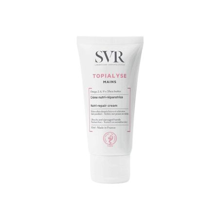 SVR Топиализ Крем для рук — защитный и восстанавливающий крем для поврежденной и сухой кожи рук. Структурированная с помощью жидких кристаллов формула обеспечивает непрерывное и длительное увлажнение. Смягчает и разглаживает Успокаивает и восстанавливает Защищает Благодаря легкой текстуре крем быстро впитывается, не оставляя жирной или липкой пленки на коже. Легкий аромат с древесными и фруктовыми нотами не вызывает аллергии. Без минеральных масел, без парабенов, без силикона, гипоаллергенно. Протестирован на сухой коже с тенденцией к атопии.Активные компоненты: Масло камелии (Омега 3,6,9) — смягчает и питает кожу; Масло карите — восстанавливает гидролипидный баланс и возвращает коже комфорт; Глицерин, инкапсулированный в форму «жидких кристаллов» — пролонгированное увлажнение.