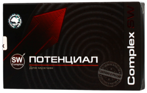 SW Complex Потенциал для мужчин — Биологически активная добавка (БАД) к пище — способствует усилению сексуального влечения — либидо, ускорению кровообращения в области малого таза, что улучшает потенцию; при профилактике заболеваний предстательной железы, предупреждению воспалительных процессов в мочеполовой системе, улучшению самочувствия и повышению жизненного тонуса.Содержание в 2-х капсулах (дневная норма):Полифенольные соединения 40 мгАрбутин 1,0 мгГлициризированная кислота 3 мгКверцитин 18 мгВитамин B3 (ниацин) 20 мгВитамин Е 10 мгВитамин А 0,6 мгМарганец 0,8 мгЦинк 6 мгСелен 30 мкгКаждый из растительных экстрактов эффективен самостоятельно, но их сочетание с минералами и витаминами, значительно усиливает оздоровительный эффект и возвращает мужчине молодость и настоящую мужскую силу. Состав препарата подобран таким образом, чтобы сохранить мужское здоровье и уверенность в своей силе на долгие годы, а не просто дать кратковременный и разовый успех во время полового акта.В состав SW Complex Потенциал для мужчин входят натуральные компоненты: Экстракт корня эврикомы длиннолистной, Экстракт кордицепса, Экстракт листьев дамианы Экстракт листьев горянки стрелолистной, Экстракт корня солодки, Экстракт чёрного перца, Экстракт гинкго билобы, Цинка аспарагинат Марганца аспарагинат Селекор С (Селен) Кверцетин Витамин РР (ниацин) (Витамин В3) Витамин Е Витамин АХарактеристика отдельных компонентов:Экстракт корня эврикомы длиннолистной увеличивает уровень продукции эндогенного тестостерона, стимулирует метаболизм, усиливает образование красных кровяных телец в крови, в результате чего, повышается половое влечение, увеличивается физическая выносливость, силовые показатели и мышечная масса, стимулирует иммунную систему и способствует сжиганию жира, оказывая, таким образом, общее благотворное и омолаживающее влияние на организм.Экстракт кордицепса оказывает мощное иммунокоррегирующее действие, замедляет процессы старения, активно выводит из организма токсичные вещества, тонизирует органы репродуктивной системы, тем самым способствует восстановлению энергии стареющего организма. Обладает противовоспалительным действием, оказывает подавляющее действие на золотистый стафилококк, стрептококк, пневмококк, туберкулезную палочку.Экстракт листьев дамианы повышает либидо и усиливает удовольствие от близости, увеличивает приток крови к половым органам и способствует эрекции, способствует выработке тестостерона. В качестве мягкого седативного средства улучшает настроение, снижает беспокойство, приступы тревоги и головных болей. Регулирует сахар в крови.Экстракт листьев горянки стрелолистной обостряет и стимулирует чувствительность нервных окончаний, поддерживает сексуальное желание и общий тонус организма. Благодаря высокому содержанию флавоноида икариина, улучшается эректильная функция и качество спермы, повышается сексуальная активность и либидо, стимулируется репродуктивная функция, устраняется бесплодие. В отличие от других стимуляторов потенции (например, виагры), икариин не имеет побочных эффектов, поскольку действует избирательно на нужный фермент (фосфодиэстеразу-5), что способствует улучшению кровотока в половом члене и успешному восстановлению естественной эрекции. Экспериментально доказано, что экст