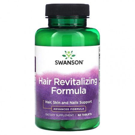 Описание Поддержка волос, кожи и ногтейУлучшенная формулаПищевая добавкаСодержит основные питательные вещества для волос, кожи и ногтейУлучшает образование коллагенаУтолщает и укрепляет волосы и ногтиКачество, подтвержденное наукой с 1969 г.Пробудите свои волосы с помощью улучшенной восстанавливающей формулы Swanson! Эта уникальная формула питает волосяные фолликулы от корней. Наша улучшенная формула для восстановления волос содержит синергетическую смесь тщательно подобранных питательных веществ, таких как витамины группы B, экстракт красного клевера, экстракт виноградных косточек и многое другое, в идеальном соотношении. Дополнительный бонус: эта уникальная формула приносит пользу не только вашим волосам, он также поддерживает здоровье кожи и ногтей! Рекомендации по применению В качестве пищевой добавки принимать по одной таблетке два раза в день, запивая водой. Ингредиенты Карбонат кальция, стеариновая кислота, тапиоковый декстрин, кроскармеллоза натрия, стеарат магния, диоксид кремния, микрокристаллическая целлюлоза (растительная клетчатка), пленочная оболочка на водной основе (очищенная вода, гидроксипропилметилцеллюлоза, полиэтиленгликоль).Содержит рыбу (тилапию) и сою. Предупреждения Только для взрослых. Проконсультируйтесь с врачом перед использованием этого или любого другого продукта, если вы беременны, кормите грудью, принимаете лекарства или страдаете каким-либо заболеванием.Хранить в недоступном для детей месте. Не использовать, если защитная пленка повреждена. Хранить в сухом прохладном месте. Пищевая ценностьРазмер порции: 1 таблетка