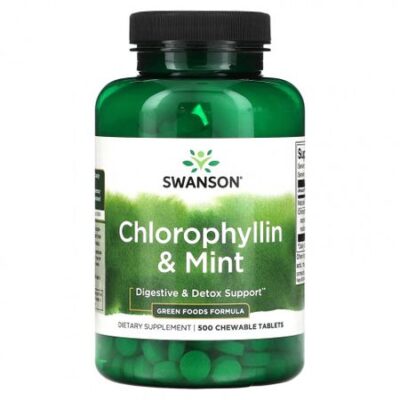 Swanson, Хлорофиллин и мята, 500 жевательных таблеток