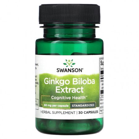 Swanson, Экстракт гинкго билоба, стандартизированный, 60 мг, 30 капсул