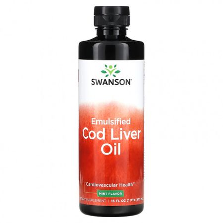 Swanson, Эмульгированный жир печени трески, мята, 473 мл (16 жидк. Унций)