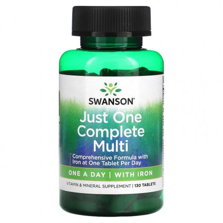 Описание Комплексная формула с железом по одной таблетке в день Витаминная и минеральная добавка Обеспечивает дневной запас 15 незаменимых витаминов и минералов Защищает от истощения питательных веществ, вызванного стрессом Качество, подтвержденное наукой с 1969 г.Swanson Just One Multi with Iron — это отличный «страховой полис» для удовлетворения ваших основных потребностей. Он обеспечивает дневной запас необходимых витаминов и минералов.
