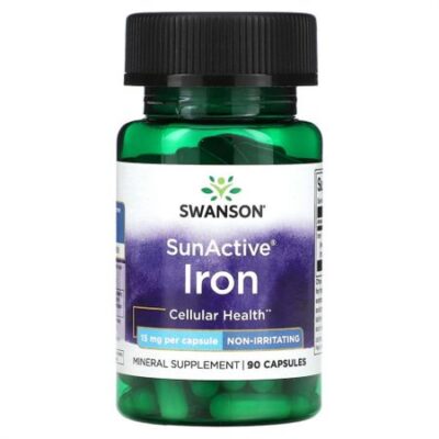 Описание Здоровье на клеточном уровне15 мг в 1 капсулене вызывает раздраженияДобавка с минераламиПолное благополучие для разума, тела и домаНепревзойденная чистота и эффективностьКачество, подтвержденное наукой с 1969 г.Если обычные добавки железа не подходят для желудка, пора попробовать нераздражающее железо Swanson Ultra SunActive. Как важнейший компонент гемоглобина, доставляющего кислород к нашим клеткам, железо необходимо для поддержания уровня энергии и жизнеспособности. Но у многих обычные добавки железа могут вызывать дискомфорт, особенно в желудке и желудочно-кишечном тракте. Вот тогда и может помочь SunActive. Эта революционная добавка железа содержит пирофосфат железа, форму железа с высокой биодоступностью, которая мягко воздействует на желудок и желудочно-кишечный тракт, что делает ее идеальной для людей, которым трудно переносить обычные добавки с железом. Микроинкапсулировано для обеспечения оптимальной стабильности. SunActive — одна из самых мягких и эффективных добавок, содержащих железо. Рекомендации по применению В качестве пищевой добавки принимать по одной капсуле в день во время еды, запивая водой. Ингредиенты Смесь эмульгаторов SunActive® (мальтодекстрин, эфиры полиглицерина, гидролизованный подсолнечный лецитин, хлорид натрия), желатин, микрокристаллическая целлюлоза (растительная клетчатка), стеарат магния. Предупреждения Случайная передозировка продуктов, содержащих железо, — основная причина отравлений с летальным исходом среди детей до 6 лет. Хранить продукт в недоступном для детей месте. В случае передозировки немедленно обратиться к врачу или в токсикологический центр.Только для взрослых. Проконсультируйтесь с врачом перед использованием этого или любого другого продукта, если вы беременны, кормите грудью, принимаете лекарства или страдаете каким-либо заболеванием.Хранить в недоступном для детей месте. Не использовать, если защитная пленка повреждена. Хранить в сухом прохладном месте. Пищевая ценностьРазмер порции: 1 капсула Количество в 1 порции% от суточной нормыЖелезо (пирофосфат железа) (от SunActive®)15 мг83%