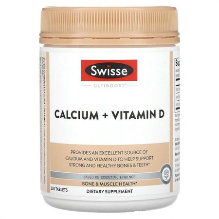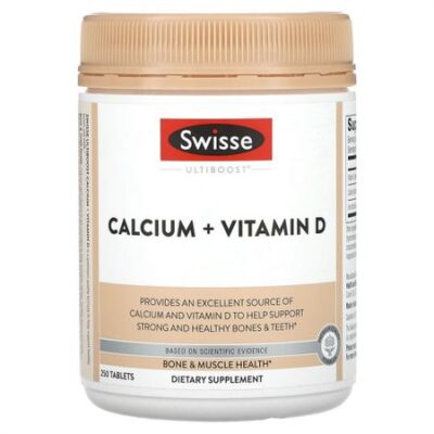 Пищевая ценностьРазмер порции: 3 таблеткиПорций в упаковке: прибл. 83 Количество в 1 порции% от суточной нормыВитамин D (холекальциферол)25 мкг125%Кальций (из цитрата кальция, карбоната кальция)1020 мг78% Помогает сохранять кости и зубы здоровымиПродукт разработан на основе научных данныхДобавка премиального качестваДля здоровья костей и мышцПищевая добавкаПостоянное употребление достаточного количества кальция в составе сбалансированного рациона может снизить риск развития остеопороза в будущем.Кальций + витамин D от Swisse Ultiboost — это добавка премиального качества, которая помогает поддерживать кости и зубы в здоровом состоянии и является источником кальция. В сочетании со здоровым рационом питания прием кальция может способствовать снижению риска развития остеопороза.Здоровье костей и зубов. Кальций и витамин D помогают поддерживать кости и зубы крепкими и здоровыми. Скелет человека состоит из 206 костей, которые образуют каркас для тела. Скелет поддерживает форму, защищает жизненно важные органы и является опорой для прикрепления мышц. В костях хранится запас минералов и образуются клетки крови.Улучшенное усвоение. Добавка содержит полученный из натуральных ингредиентов витамин D3, который ускоряет усвоение и обеспечивает доставку кальция в костную ткань.Остеопороз. С возрастом дефицит кальция в рационе может привести к развитию остеопороза. Постоянный прием добавок с кальцием в сочетании со здоровой диетой может снизить риск развития остеопороза.Потребность в кальции может увеличиваться в зависимости от возраста, пола, режима питания, во время беременности, грудного вскармливания и постменопаузы. Добавка «Кальций + витамин D» от Swisse Ultiboost была разработана на основе научных данных и содержит два полезных питательных вещества в необходимой дозировке.