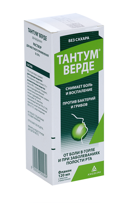 Главная » Аптека Тантум верде 0.15%, 120 мл, раствор для местного применения Просмотров 10 Азиенде Кимике Риуните Анжелини Франческо АКРАФ СпА
