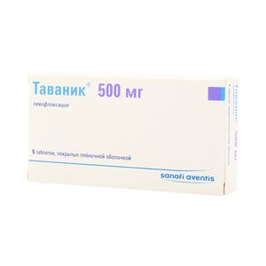 Показания к применениюШироко используют Таваник для проведения терапии следующих патологий:- септицемии;- интраабдоминальной инфекции;- инфекций мочевыводящих путей;- внебольничных пневмоний;- инфекций бронхолегочной системы (хронический бронхит, пневмония);- туберкулеза (в комплексной терапии);- инфекций ЛОР-органов (отиты, синуситы, гаймориты);- хламидиоза, микоплазмоза;- инфекций кожи, подкожной клетчатки, мягких тканей (абсцессы, фурункулы, целлюлит);- простатита (бактериального генеза).Применение при беременности и кормлении грудьюПрепарат противопоказан к применению при беременности и у кормящих грудью женщин.ПротивопоказанияНе назначается Таваник до 18 лет. Врач с предельной осторожностью должен назначать препарат пожилым пациентам (из-за большой вероятности наличия почечной недостаточности).Таваник не применяют при:- эпилепсии и склонности к эпилептическим реакциям;- беременности;- терапии глюкокортикостероидами (из-за увеличения риска разрыва сухожилий);- наличии в анамнезе поражений сухожилий после употребления хинолонов;- гиперчувствительности к хинолонам, фторсодержащим препаратам;- лактации.Побочное действиеНежелательные эффекты на прием препарата Таваник следующие:- коллапс, гипотензия, тахикардия;- диспепсия;- псевдомембранозный энтероколит;- гипогликемия;- тошнота, рвота;- гепатит, гипербилирубинемия;- дисбактериоз;- повышение активности АсТ, АлТ;- головная боль;- бессонница, тревожность, страх;- парестезии, судороги, двигательные расстройства;- сонливость, головокружение;- галлюцинации, депрессия;- нарушения чувствительной сферы (обоняния, осязания, тактильных и вкусовых ощущений);- артралгии, миалгии;- миастения;- спутанность сознания;- тендинит, разрыв сухожилий;- интерстициальный нефрит;- гиперкреатининемия;- нейтропения, эозинофилия, панцитопения, лейкопения, тромбоцитопения;- синдром Стивенса-Джонсона;- агранулоцитоз;- гемолитическая анемия;- реакции фотосенсибилизации;- отечность кожных покровов, зуд;- отек слизистых;- синдром Лайелла;- флебит;- суперинфекции;- крапивница;- анафилаксия;- бронхоспазм, пневмонит аллергического генеза;- васкулит;- рабдомиолиз;- обострение порфирии.Увеличение дозы Таваника до 1000 мг не усиливает Побочное действия. Выраженность нежелательных эффектов и возраст не связаны. В основном переносимость левофлоксацина хорошая, серьезные Побочное эффекты развиваются редко.СоставДействующее вещество: левофлоксацинВспомогательные вещества: кросповидон, гипромеллоза, микрокристаллическая целлюлоза, натрия стеарил фумарат, тальк, макрогол 8000, краситель на основе титана диоксида и оксидов железа. Базовый объем: ТаблеткаКонцентрация действующего вещества (мг): 250 мг.
