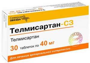 Главная » Аптека Телмисартан-СЗ Таблетки 40 мг 30 шт Просмотров 5 Таблетки белого или почти белого цвета, круглые, плоскоцилиндрические с фаской и риской. Северная Звезда