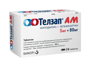 Главная » Аптека Телзап АМ Таблетки 5 мг + 80 мг 28 шт Просмотров 9 Комбинированное гипотензивное средство (блокатор медленных кальциевых каналов+ангиотензина II рецепторов антагонист). Санофи