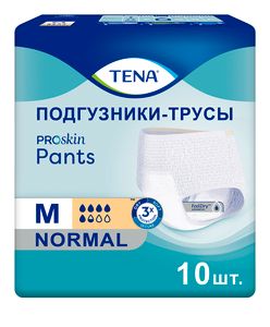 TENA Pants Normal — это мягкие и комфортные подгузники-трусы для активных, подвижных женщин и мужчин с недержанием.TENA Pants Normal обеспечивают сухость, надежную защиту от протеканий и контроль запаха.Технология FeelDry Advanced позволяет быстро впитывать жидкость и удерживать ее внутри впитывающего слоя, что способствует поддержанию естественного здоровья кожи.Одноразовые подгузники-трусы изготовлены из дышащего материала, благодаря чему кожа дышит и не переувлажняется. TENA Pants можно надевать и снимать, как обычное белье.Воздухопроницаемый нетканый материал поверхности. Распушенная целлюлоза распределяет влагу внутри впитывающего слоя. Суперабсорбент надежно удерживает влагу и блокирует неприятный запах. Полиэтиленовая пленка и полипропиленовый слой для защиты от протеканий. Эластичные нити из синтетического каучука для отличной посадки изделия по фигуре. Термоклей соединяет остальные компоненты изделия между собой. Тройная защита для поддержания здоровья кожи; Технология FeelDry Advanced; Эластичные материалы для хорошей посадки по фигуре; Впитываемость: 5,5 капель; Размер: М; Рекомендованный обхват талии/бедер (большее значение): от 80 до 110 см.