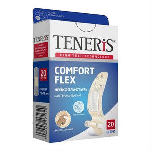 TENERIS – эксперт в области профессиональных медицинских перевязочных материалов. TENERIS COMFORT FLEX — набор бактерицидных медицинских лейкопластырей на полимерной перфорированной основе с ионами серебра. основа из перфорированной полимерной плёнки влагоустойчивый пропускает воздух бактерицидный (бензалкония хлорид) антитравматическое покрытие раневой подушечки