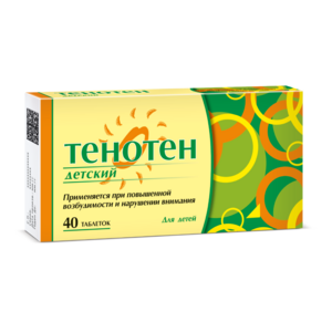 Таблетки плоскоцилиндрической формы, с риской и фаской, от белого до почти белого цвета. На плоской стороне с риской нанесена надпись MATERIA MEDICA, на другой плоской стороне нанесена надпись TENOTEN KID.