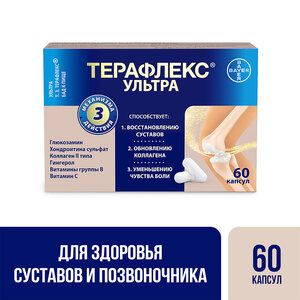 Ультра Терафлекс® БАД к пище – это комбинация хондропротекторов хондроитина и глюкозамина – важнейших структурных компонентов хрящевой ткани суставов, усиленная следующими ингредиентами: • неденатурированный (нативный) коллаген II типа (CollavantТМ n2 (является торговым знаком, лицензированным компанией БИОИБЕРИКА, С.А.У.) – на иммунном уровне способствует предупреждению разрушения собственного коллагена хряща и стимуляции естественного обновления хрящевой ткани сустава; • гингерол – обладает природным обезболивающим и противовоспалительным эффектом; • витамины группы В – усиливают хондропротекторное действие глюкозамина и хондроитина; • витамин С – способствует синтезу собственного коллагена в организме. Данная комбинация веществ способствует: • интенсивному восстановлению хрящевой ткани суставов, • обновлению собственного коллагена тканей суставов, • уменьшению воспаления и боли в суставах.