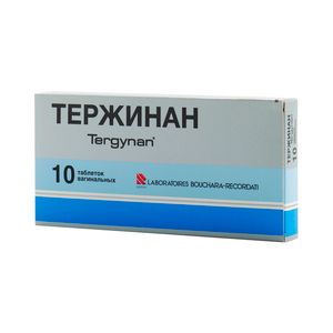 Показания к применениюБактериальный вагинит; трихомониаз влагалища; вагинит, вызванный грибами рода Candida; смешанный вагинит. Профилактика урогенитальных инфекций/вагинитов, в т.ч.: перед гинекологическими операциями; перед родами или абортом; до и после установки ВМС; до и после диатермокоагуляции шейки матки; перед гистерографией.Применение при беременности и кормлении грудьюВозможно применение Тержинана со II триместра беременности.Применение Тержинана в I триместре беременности и в период лактации (грудного вскармливания) возможно только в случаях, когда ожидаемая польза терапии для матери превышает потенциальный риск для плода или младенца.ПротивопоказанияПовышенная чувствительность к компонентам препарата.Побочное действиеЧувство жжения, зуд и раздражение во влагалище. Аллергические реакции.СоставДействующее вещество: Тернидазол, Нистатин, Неомицина сульфат, Преднизолона метасульфобензоат натрияКонцентрация действующего вещества (мг): Тернидазол — 200 мг, Неомицина сульфат — 100 мг, Преднизолона метасульфобензоат натрия — 3 мгВзаимодействие с другими препаратамиЛекарственное взаимодействие препарата Тержинан не выявлено.