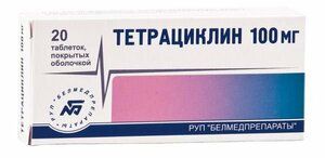 Показания к применениюИнфекционно-воспалительные заболевания, вызванные чувствительными к тетрациклину микроорганизмами, в т.ч. пневмония, бронхит, эмпиема плевры, ангина, холецистит, пиелонефрит, кишечные инфекции, эндокардит, эндометрит, простатит, сифилис, гонорея, бруцеллез, риккетсиозы, гнойные инфекции мягких тканей, остеомиелит; трахома, конъюнктивит, блефарит; угри.Профилактика послеоперационных инфекций.Применение при беременности и кормлении грудьюТетрациклин противопоказан при беременности и в период лактации.Проникает через плацентарный барьер. Может вызывать долговременное изменение цвета зубов, гипоплазию эмали, подавление роста костей скелета плода. Кроме того, тетрациклин может быть причиной развития жировой инфильтрации печени.ПротивопоказанияПеченочная недостаточность, лейкопения, микозы, детский возраст до 8 лет, беременность, период лактации (грудное вскармливание), повышенная чувствительность к тетрациклину.Побочное действиеСо стороны пищеварительной системы: тошнота, рвота, анорексия, боли в животе, диарея, запор, сухость во рту, глоссит, изменение цвета языка, эзофагит, транзиторное повышение активности печеночных трансаминаз, ЩФ, концентрации билирубина, остаточного азота.Со стороны ЦНС: головокружение, головная боль.Со стороны системы кроветворения: нейтропения, тромбоцитопения, гемолитическая анемия.Аллергические реакции: кожная сыпь, зуд, эозинофилия, отек Квинке.Дерматологические реакции: фотосенсибилизация.Эффекты, обусловленные химиотерапевтическим действием: кандидозный стоматит, кандидозный вульвовагинит, кишечный дисбактериоз.Местные реакции: болезненность в месте введения.Прочие: гиповитаминоз витаминов группы В.СоставВ 1 таблетке содержится: Тетрациклин100 мгВзаимодействие с другими препаратамиПрепараты, содержащие ионы металлов (антациды, препараты, содержащие железо, магний, кальций), образуют с тетрациклином неактивные хелаты, в связи с чем необходимо избегать их одновременного назначения.Необходимо избегать комбинации с пенициллинами, цефалоспоринами, оказывающими бактерицидное действие и являющимися антагонистами бактериостатических антибиотиков (в т.ч. тетрациклина).При одновременном применении тетрациклина с ретинолом возможно развитие внутричерепной гипертензии.При одновременном применении с колестирамином или колестиполом отмечается нарушение всасывания тетрациклина.
