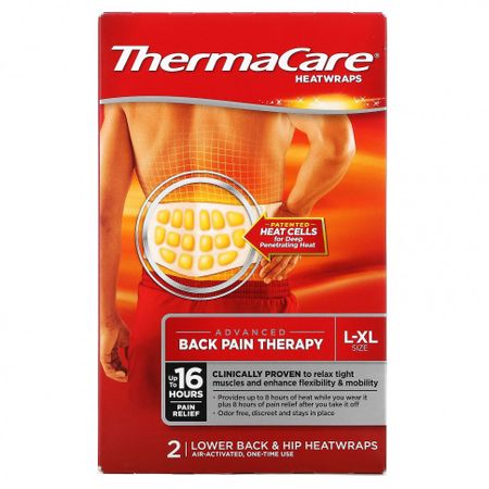 ThermaCare, Расширенная терапия боли в спине, L-XL, одноразовое, 2 тепловых обертывания для поясницы и бедер