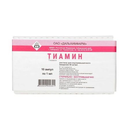 Тиамина хлорид 5%, 1 мл, 10 шт, раствор для инъекций