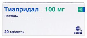 Показания к применениюУ взрослых:Купирование психомоторного возбуждения и агрессивных состояний, особенно при хроническом алкоголизме или в пожилом возрасте.Интенсивный хронический болевой синдром.У взрослых и детей старше 6 лет:Различные типы хореи, синдром Жилля де ла ТуреттаУ детей старше 6 лет:Расстройства поведения с ажитацией и агрессивностью.Применение при беременности и кормлении грудьюПрепарат противопоказан в I триместре беременности и в период лактации.Относительно влияния на мозг плода нейролептиков, применяемых при беременности, данных не имеется. Не рекомендуется применять тиаприд во II и III триместрах беременности. Однако если существует необходимость применения препарата, то рекомендуется по возможности ограничить дозу и продолжительность лечения.При продолжительном лечении и/или применении препарата в высоких дозах и/или при поздних сроках беременности следует контролировать неврологические функции новорожденного.Неизвестно, выделяется тиаприд с грудным молоком, поэтому при необходимости применения препарата в период лактации грудное вскармливание следует прекратить.ПротивопоказанияПовышенная чувствительность к тиаприду или к другим компонентам препарата.Диагностированные или подозреваемые пролактин-зависимые опухоли, например: пролактинома гипофиза и рак груди.Диагностированная или подозреваемая феохромоцитома.В комбинации с сультопридом;Беременность (I триместр)Период лактацииДетский возраст (до 6 лет)Гипертонический кризВыраженная почечная и/или печеночная недостаточностьВ комбинации с дофаминергическими агонистами (амантадин, апоморфин, бромокриптин, каберголин, энтакапон, лизурид, перголид, пирибедил, прамипексол, хинаголид, ропинирол), за исключением больных, страдающих болезнью Паркинсона.В комбинации с лекарственными средствами, которые могут вызывать нарушение ритма сердца: антиаритмические препараты Iа класса (хинидин, гидрохинидин, дизопирамид) и III класса (амиодарон, соталол, дофетилид, ибутилид), некоторые нейролептики (тиоридазин, хлорпромазин, левомепромазин, трифлуоперазин, циамемазин, амисульприд, сульпирид, пимозид, галоперидол, дроперидол), а также со следующими препаратами: леводопа, бепридил, цисаприд, дифеманил, эритромицин, мизоластин, внутривенный винкамин, спарфлоксацин, моксифлоксацин.СоставДействующее вещество: Тиаприд (Tiapridum)Концентрация действующего вещества (мг): 100