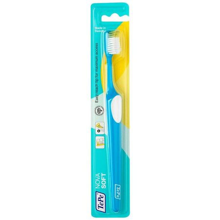 Бренд ТеРе — продукты для поддержания здоровья зубов и полости рта. Вся продукция TePe разрабатывается совместно с профессионалами в области стоматологии.Зубные щетки TePe NOVA — это специальная форма головки в сочетании с удлиненными пучком на «носике» позволяет проникнуть в труднодоступные места, особенно вокруг жевательных зубов.TEPE NOVA ЗУБНАЯ ЩЕТКА ДЛЯ ВЗРОСЛЫХ/SOFT- создана для бережного и эффективного очищения полости рта.Жёсткость щетины: мягкая (жёлтый цвет щетинок)Разные цветовые исполнения и дизайнВНИМАНИЕ!!! При заказе отсутствует возможность выбрать определённый цвет и дизайнЭргономичная, нескользящая ручка со специальной выемкой под палец, и зауженная головка, которую можно сгибать без предварительного нагрева, гарантируют невероятное удобство во время чистки.Эргономичная, нескользящая ручка удобно лежит в руке.Удлиненные щетинки на кончике головки щетки обеспечивают наилучшее проникновение в труднодоступные места, особенно вокруг жевательных зубов.Закругленные щетинки обеспечивают бережное очищение без повреждения эмали.Результат: Чистая, блестящая поверхность зубов.