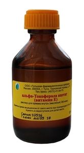 Показания к применениюГиповитаминоз Е комплексная терапия состояний, сопровождающихся повышенной потребностью организма в витамине Е: при мышечных дистрофиях, дерматомикозах, амиотрофическом боковом склерозе, астеническом и неврастеническом синдромах, переутомлении, парезах, миастениях, миопатиях, при нарушениях менструального цикла, угрозе прерывания беременности, климаксе, нарушении функции половых желез у мужчин и женщин при дерматозах, псориазе при атрофии слизистой дыхательных путей, пародонтозах при ревматических заболеваниях: фиброзитах, тендопатиях, заболеваниях суставов и позвоночника при эндокринных заболеваниях: тиреотоксикозе, сахарном диабете, особенно при кетоацидозе, диабетических полинейропатиях при синдроме мальабсорбции, хронических заболеваниях печени при миокардиодистрофии, спазмах периферических сосудов. В состоянии реконвалесценции после заболеваний, протекавших с лихорадочным синдромом.ПротивопоказанияПовышенная индивидуальная чувствительность к препарату. С осторожностью: гипопротромбинемия (на фоне дефицита витамина К – может усиливать при дозе витамина Е более 400 МЕ), тяжелый атеросклероз коронарных артерий, инфаркт миокарда, повышенный риск развития тромбоэмболий.Побочное действиеУсиливает эффект глюкокортикостероидных препаратов, нестероидных противовоспалительных препаратов, антиоксидантов. Увеличивает эффективность и уменьшает токсичность витаминов А, D, сердечных гликозидов. Назначение витамина Е в высоких дозах может вызвать дефицит витамина А в организме. Повышает эффективность противоэпилептических лекарственных средств у больных с эпилепсией (у которых повышено содержание в крови продуктов перекисного окисления липидов). Одновременное применение витамина Е в дозе более 400 ЕД/сут с антикоагулянтами (производными кумарина и индандиона) повышает риск развития гипопротромбинемии и кровотечений. Колестирамин, колестипол, минеральные масла снижают всасывание. Высокие дозы железа усиливают окислительные процессы в организме, что повышает потребность в витамине Е.Состав10% масляный раствор токоферола ацетата.Взаимодействие с другими препаратамиМеры предосторожности
