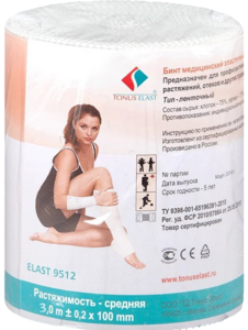 Бинт эластичный компрессионный средней растяжимости 100 мм х 3,0 м Tonus Elast 9512 применяется для профилактики и лечения хронических венозных воспалительных процессов в до- и послеоперационный периоды, для профилактики образования гематом, вывихов, растяжений, отеков, а также для профилактики и лечения травм, связанных со спортом. Металлический фиксатор с усиленной фиксацией позволяет удерживать бинт в нужном месте.